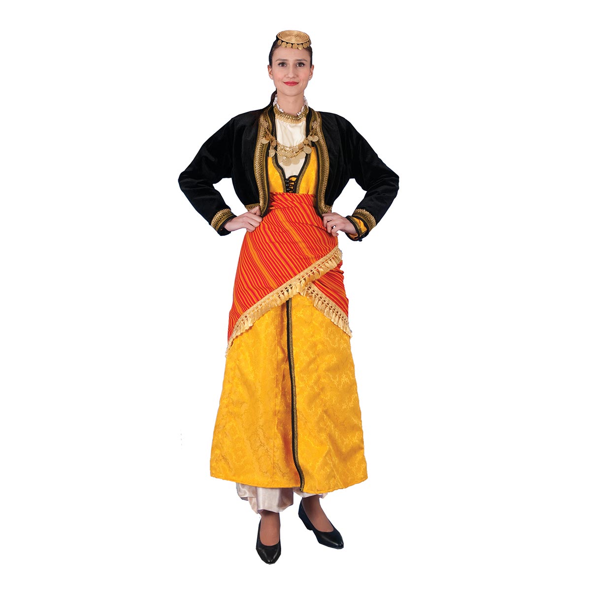 Παραδοσιακή στολή, φορεσιά που αποτελείται από: γιλέκο διακοσμημένο με τρέσσες χωρίς κέντημα, φόρεμα ,τραχηλιά ,μαντήλι μέσης , τεπες με φλουριά. Τα φλουριά,πωλούνται χωριστά